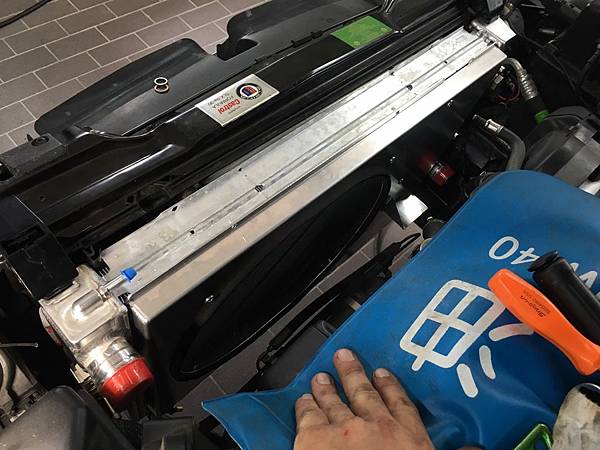 水箱下方有個原本接變速箱散熱的水孔, 我們用的不同款所以這個孔要封起來.