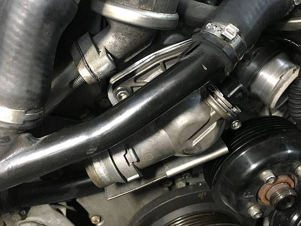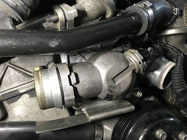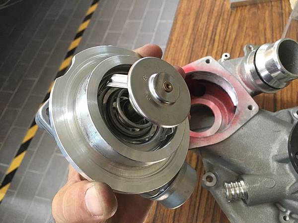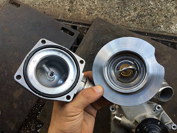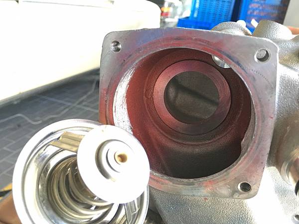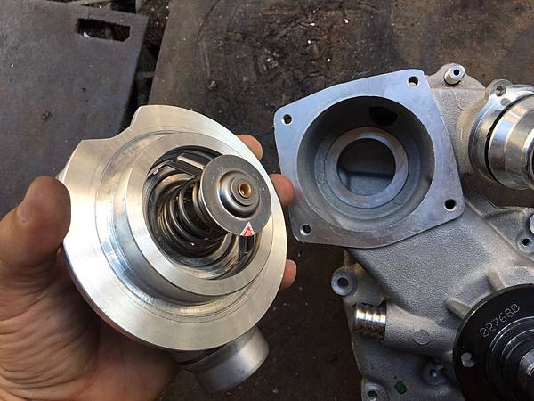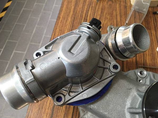 這是節溫器及水泵總成, 因為要尺寸, 所以先拆下來這樣才會準: