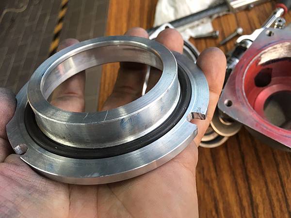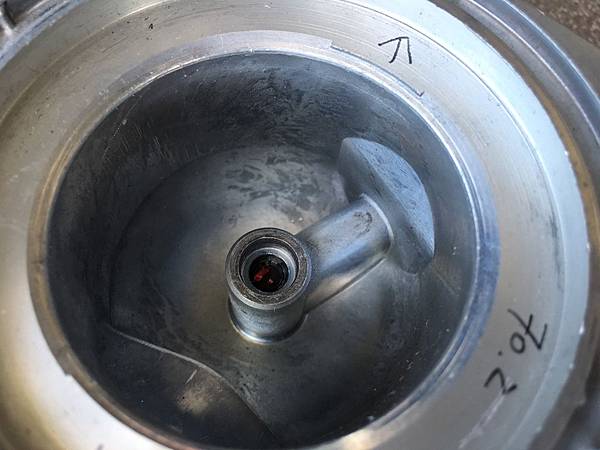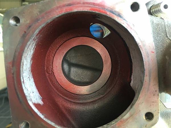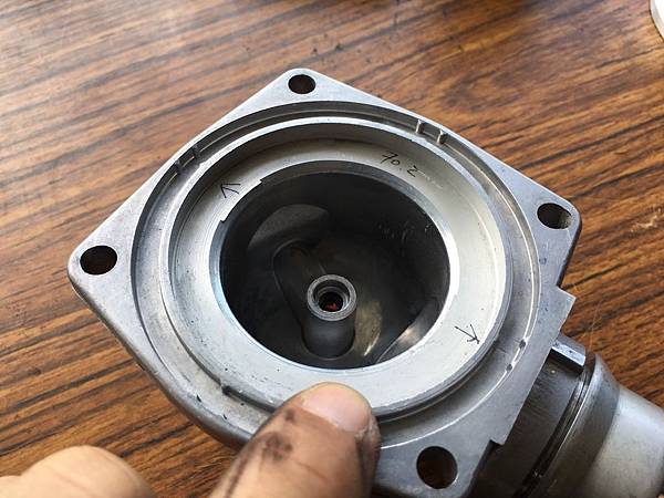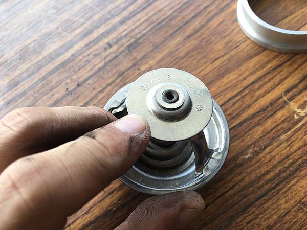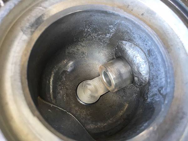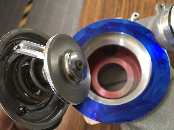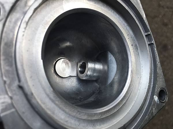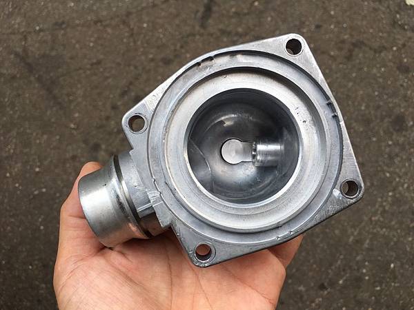 這張是由接水管的那個口看進內部, 可以看到節溫器的尾端: