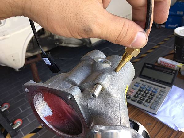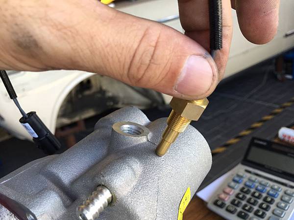 最後我們要上車的節溫器蓋, 有加了個溫度感應器的座子: