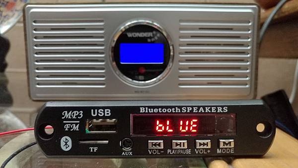 線接好之後, 電源連到12V電池, 音源輸出送到音響的AUX IN就可以測試功能是否正常, 如下圖: