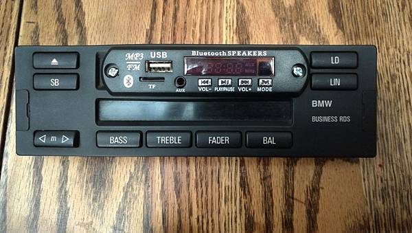 要升級音響當然要把音響主機由車上拆下來, 拆的方式很簡單, 音響左右兩邊有個小蓋子, 把小蓋子打開, 用星型板手把內部的螺絲逆時針轉到底, 這樣會把左右的卡榫鬆開, 之後手抓住卡帶的凹槽向外拉, 應該就可以拔出來, 再把後面的線組及天線拆掉就可以把主機拿出來, 這部分因為是之前就拆下來的, 所以沒有拍照請多多包涵, 接下來看一下我們要裝上車的藍芽及MP3模組, 這個在露天拍賣售價不到300塊, 價格低廉, 照片如下, 如果您上露拍搜尋一下類似的模組有很多, 有些沒有支援藍芽的免持, 有些有功率放大, 我用的這個是有支援藍芽通話(有MIC), 3.5mm AUX Input, 無功率放大的機型, 因為外型都很像, 如果要購買必須要注意看一下規格: