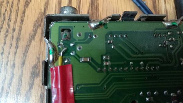 下面這張是電源修改後反面的照片, 紅色的電源線不見了:
