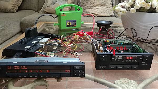 全部接好檢查一下沒有問題就可以上機實測, 連上MID & LCM之後一按Power 開機成功, 切到FM 聲音正常, 切到Tape連上藍牙, 竟然怎麼試都沒有聲音, 甚至直接用手去摸訊號的接點也是沒效, 正常有收到訊號的話應該會有一些人體的噪音被放大出來, 後來想了一下應該是卡帶要處於撥放的狀態才會切到這個輸入, 但是因為我們卡帶的機構已經被拆掉, 所以系統沒有辦法進入撥放的模式, 所以切不過來, 以上純屬我自己猜想的, 不確定是否正確, 反正就是沒有聲音, 所以沒辦法只好放棄這條路.