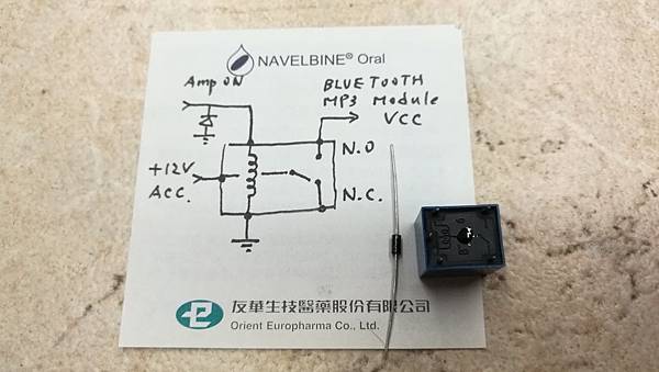 另外整個繼電器的電路因為很簡單我就手畫一下, 另外把我們用的零件也一起拍一張在下面: