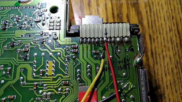 其他幾根線依電路圖接好, GND 直接並聯原來模組的地線, 模組的電源線剪斷, 靠模組那一頭接到繼電器, 另外那一頭因為我已經在IC PIN腳上點了AB膠所以已經拔不下來就留著, 接好之後如下圖: