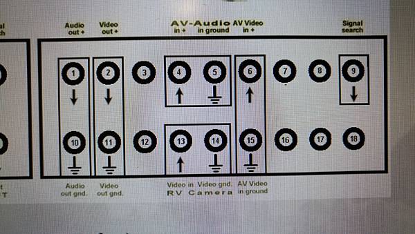 藍色連接器的PIN 17 接GND 就會強迫把畫面切到倒車的攝影鏡頭, 這個Video IN 除了接鏡頭之外當然也可以接其他的訊號源.
