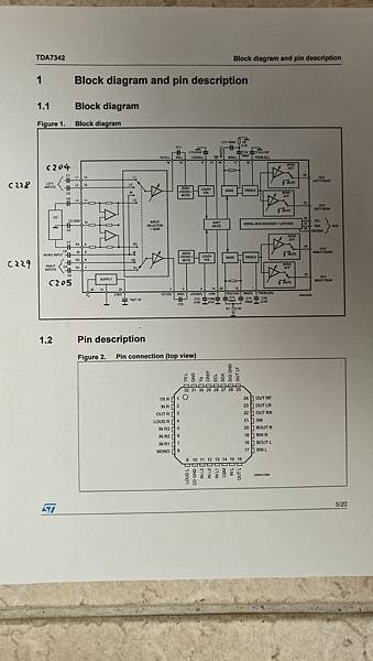板子上有一顆TDA 7342 是用來選擇訊號源的IC, 找了他的DataSheet, 再對照PCB 上的線, 有把輸入訊號的相關零件標示在圖上: