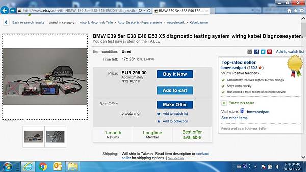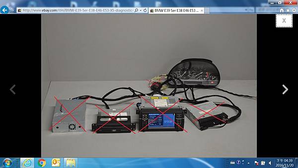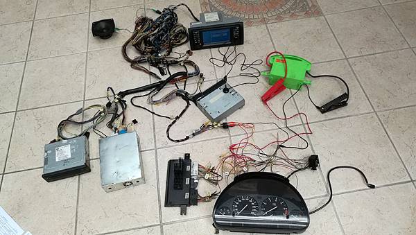 今年九月份的時候有在Blog 內發表了一篇文 ”如何在車外複製I-Bus 環境” 應該算是Part 1, 因為當時完成的電路要測試音響雖然是沒有問題, 但是後來在試組裝原廠的大螢幕主機的時候就碰到狀況了, 因此工作等於只完成了一半, 今天就來把剩下的另一半再做完, 如果看過原廠的文件就可以知道E38 的I-Bus, 有接到儀表板(原廠叫IKE)上, 透過IKE 再把I-Bus轉為K-Bus, 之後再接到車上的其他系統, 不過I-Bus 與K-Bus 差異非常小, 到後期E39 就已經直接把I-Bus 與K-Bus 直接改為同一組BUS, 不過由此我們可以知道, 在IKE 內部是有一些與 I-Bus 相關的電路, 我當時就猜測原廠的大螢幕動不起來, 應該是與IKE 內部的電路有關, 因為後來相同的接法拉到車上就動作正常了, 相關的細節可以參考 “E38 原廠大螢幕導航系統試組裝” 這一篇, 因為當時的I-Bus音響測試系統當中還沒有把IKE接上, 這也是為什麼當初我在車外試組裝大螢幕主機會失敗的原因, 所以今天就要來把 IKE 接到我的 I-Bus 音響測試系統當中, 之前在逛EBay 的時候有發現竟然有人在賣這樣的系統, 如下面兩張圖片, 不過那個金額實在有點無法接受, 只有一個IKE加上線組就要台幣一萬多塊, 還真的是暴利, 所以接下來我們就研究一下如何自行建構同樣的功能的系統.