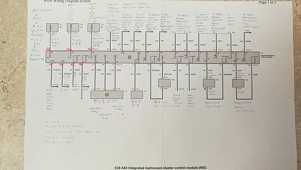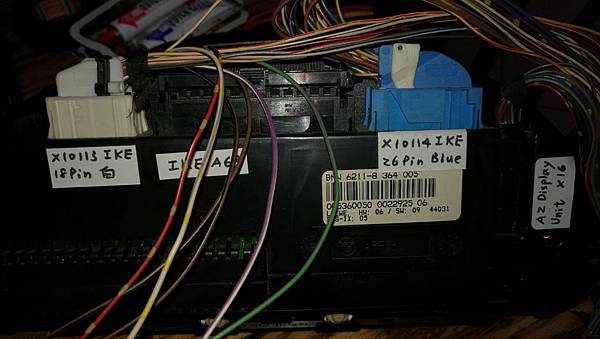 Pin 12 要特別注意, 因為同一個Connector 有兩條一樣顏色的線 (紫, 白), 因此要量一下避免弄錯, IKE 反面的照片如下, 有三個Connector, 一個黑色, 一個藍色, 一個白色, X10113是白色的, 只須要拉這個Connector 的線就可以:
