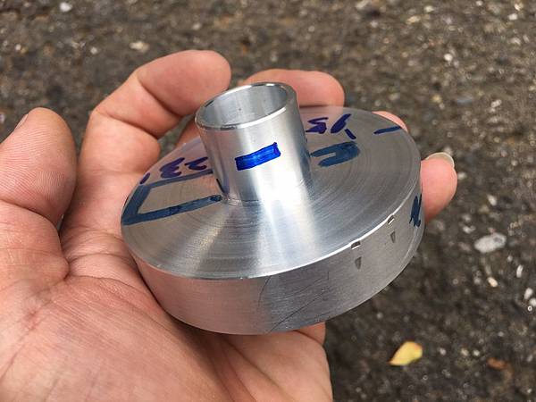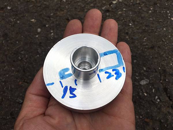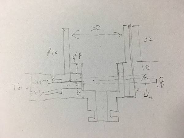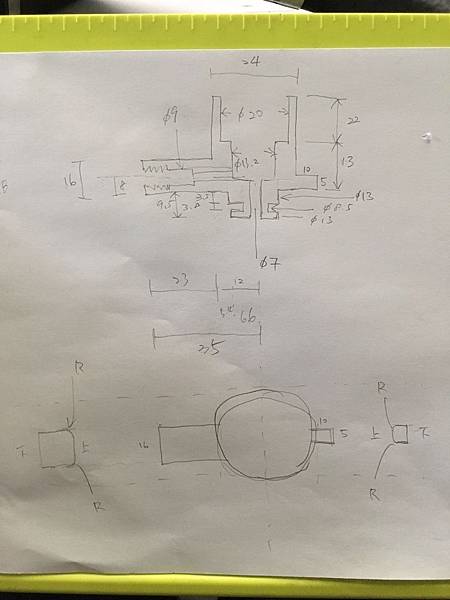 轉接座開始由一整塊鋁碇先用車床加工, 因為有部份插Sensoe的區域是圓形的, 這個是側視圖: