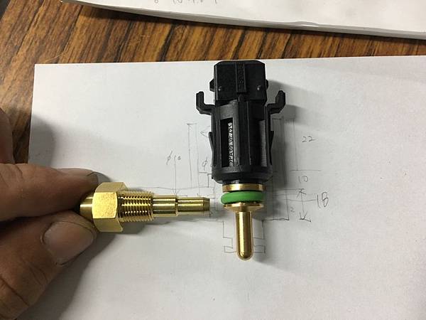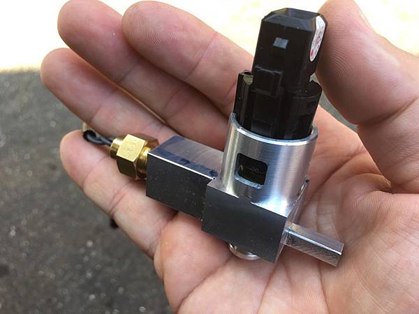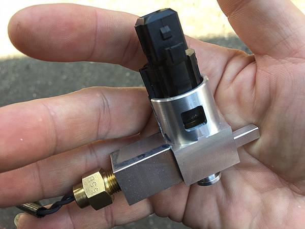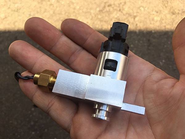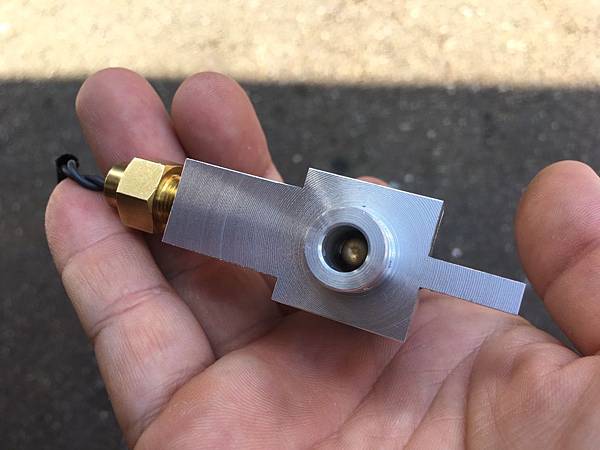紙上談兵的部份做完接下來就是硬功夫了, 如何把感應器裝到我們想量測的地方, 水溫的部份想直接安裝在下水管, 而且Boost 的光頭大師跟我一樣龜毛, 想要延用原廠裝Sensor 的位置, 所以花了許多功夫訂做了一個轉接頭, 可以讓我們增加一組水溫感應器, 接下來就看照片: