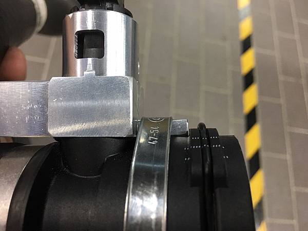 實際上車, 鎖死之後一定要這個角度, 要不然沒有空間放感應器, 為了要調到正確的角度, 搞了很久, 這些都是苦工: