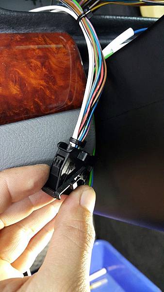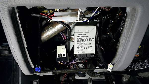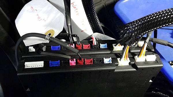 接下來就是走線了, 原則上與上面兩張電路圖的走法是類似的, 控制盒會放在方向盤左下方的置物盒那個空間, ZD顯示器會放在中控台的原廠杯架前面, 拉線也是苦工, 而且接線的品質也很重要, 等一下就可以看到, 專家廠內的技師也都是一板一眼非常細心, 該上熱縮套管, 該包覆網線的一樣不少, 這也是為什麼我會比較放心的把B12 交給他們整理的原因, 看圖片吧: