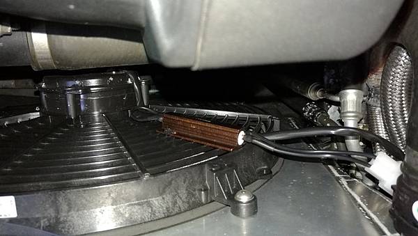 至於安裝完畢之後實際使用的狀況如何呢? 我認為是還不錯, 因為裝完之後我有用下水管的溫度比對OBC 的KTMP 溫度(Test-07), 經過一段時間觀察發現原本使用的那個PWM 控制器有時候好像有點不太正常(偶發性不正常), 不過因為是負責控制水溫如果有問題會比較危險一些, 所以後來就把這個PWM先取消換成原本買鋁水箱附送的兩段式風扇控制,照片如下: