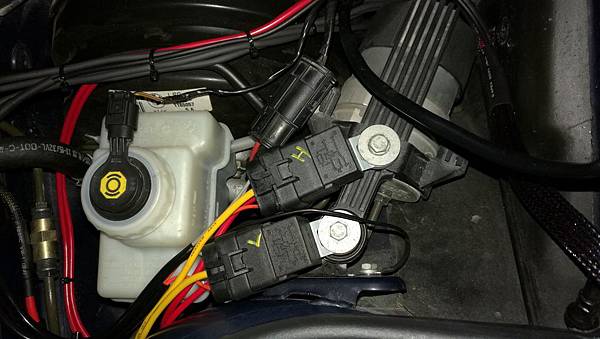 可以看到有三個孔可以接三個感應器, 一個原廠的, 兩個我們後來加裝的.