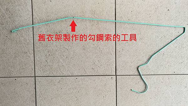 再來就是要用什麼工具來把鋼索勾出來, 請出我們的克難工具:
