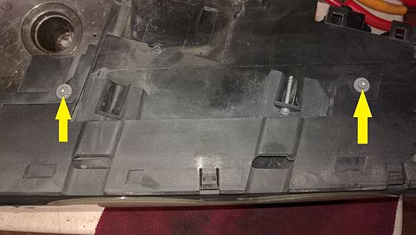 大燈的下方有個塑膠座也要拆下來, 有兩顆螺絲: