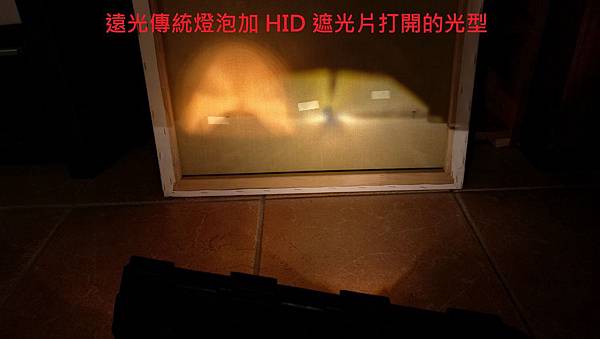 下面這張是開遠光, 可以看出來HID 魚眼遮光片移動之後光型的差異: