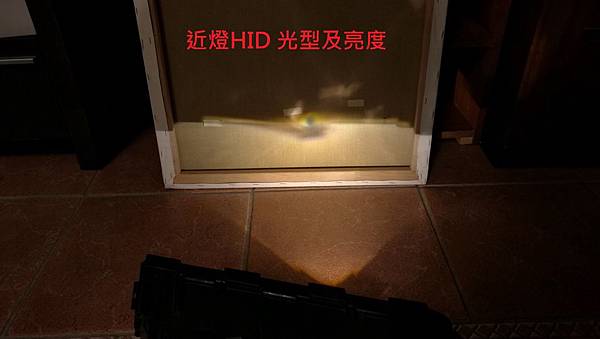 線路接好, 燈裝上就來試一下光形, 先不用上車在家就可以, 把燈對著牆壁打光就可以, 兩種遠近光的光型如下, 應該很容易可以看得出來差異, 第一張是近光燈: