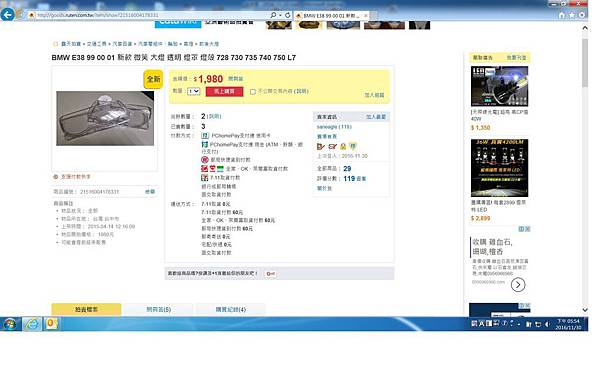 再來就是把大燈完全組回去, 因為之前這組大燈的塑膠大燈外殼已經老化非常嚴重, 所以在露天上找到這一組, 後來才知道這一位賣家(saneagle)也是我們E38社團內的車友 林敬詔先生, 我前前後後一共用過兩組, 密合度與原廠品一樣, 效果很好, 而且最重要的是比原廠便宜不少, 如果有須要的車友可以多多向 林Sir 購買, 下面幾張是大燈外殼照片, 節錄自車友的拍賣網頁, 這個是後期的塑膠燈殼, 前期的玻璃燈罩也可以問一下:
