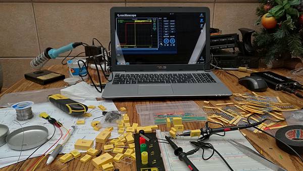 這幾個訊號沒問題之後就可以開始設計線路了, 因為有一些與時間相關的線路, 所以出動示波器, 先把這些零件數值確定後面好做事: