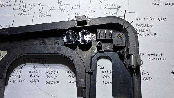 不過真正測試前排檔座也要修改, 開關LED, Buzzer 都要上, 還要把幾根要接出來的訊號也焊上, 這些在線路圖上都有: