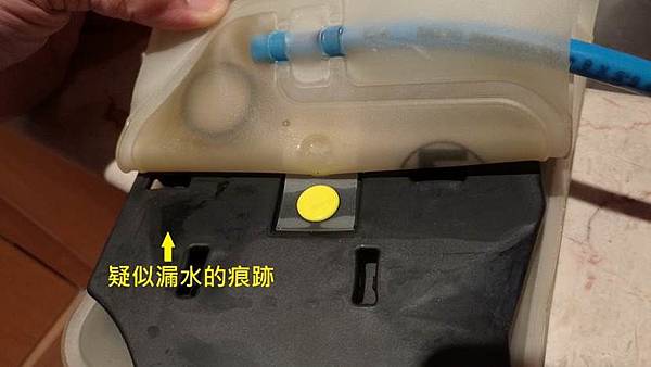3:拆下來的主動座椅囊袋, 表面上看起來有水漬, 有點懷疑是否有漏水的狀況, 所以想先搞清楚, 如果有漏水當然要先處理好再上車, 疑似漏水的照片如下: