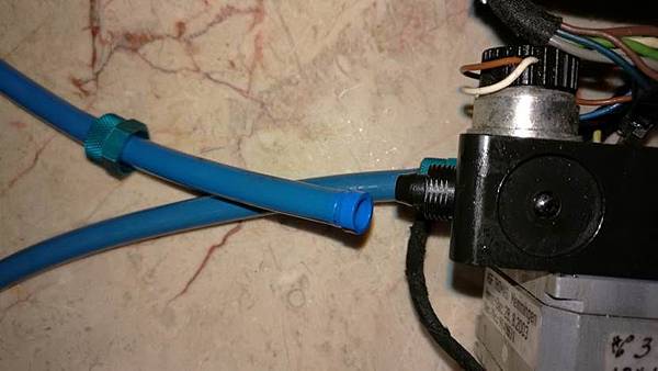 管子拉出來的狀況, 上面的塑膠座有個小凸緣, 可以幫助固定塑膠管: