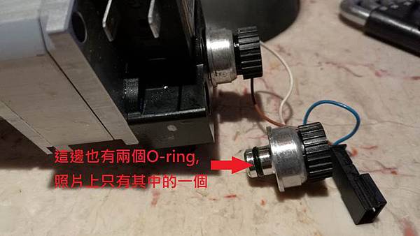 壓力感應器旁邊那塊黑色的塑膠有一個六角螺絲鎖在馬達本體上的, 可以拆下來, 拆開之後就是下面這張: