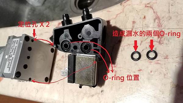 看來這兩個O-ring 就是造成漏水的元兇, 年代久遠之後就會漏液, 可以自己換一下, 當然中央那個螺絲也要鎖緊, 另外兩個壓力感應器中央也有個小的星型螺絲在固定這兩個壓力感應器, 拆掉之後就可以把壓力感應器抽出來如下: