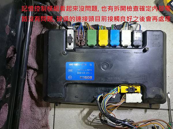 這一段寫起來不長但時間花掉不少, 因為費工, 這個部份換好之後總算可以組裝回去了, 組裝完畢之後就可以來試一下控制模組, 把所有的線路都接上, 開始透過控制模組來控制座椅, 這時候整張座椅的動作反應很其怪, 試了好久, 本來以為是記憶控制模組損壞, 還特別拆開看了內部, 不過內部看起來很乾淨不像是有問題, 抱歉這部份拆開時沒拍到照片, 外部照片如下: