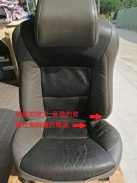 我們家另外一台Saab 95 2.0 EP的車款,車上原廠搭配的是手動座椅,感覺用起來不太順手, 因此想要把他改裝成電動記憶座椅, 正好前一陣子有個車友拆賣他的料車,有賣他的電動記憶座椅, 所以用還算合理的價格取得這一組, 不過價格不高當然是有原因的, 因為他的座椅皮面的狀況不是很好, 駕駛座的部分有多處破損,請看照片: