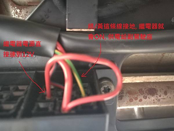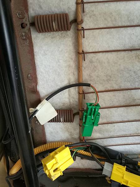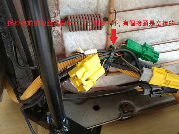 不過真正動手要拆之前還是要先讓座椅能調整, 這樣會比較好拆, 先由副駕駛座開始, 看了一下椅子下的線路,如下圖: