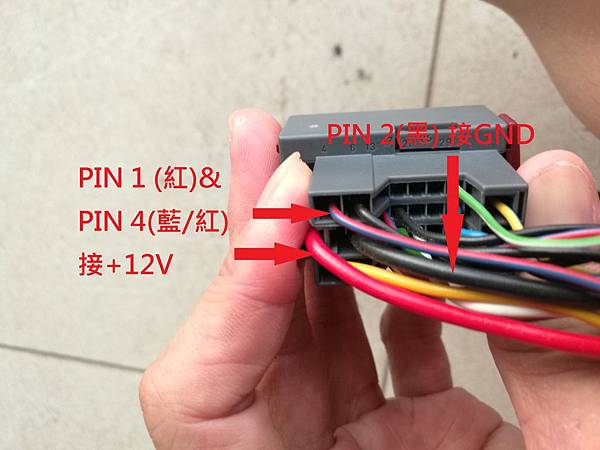 最重要的是PIN 1 & 4 要有電+12V, PIN 2接GND就可以動作了, 照片如下: