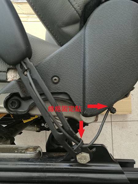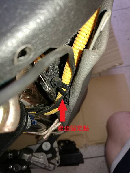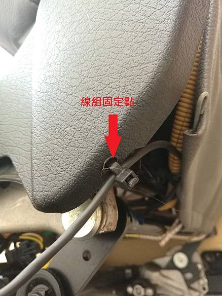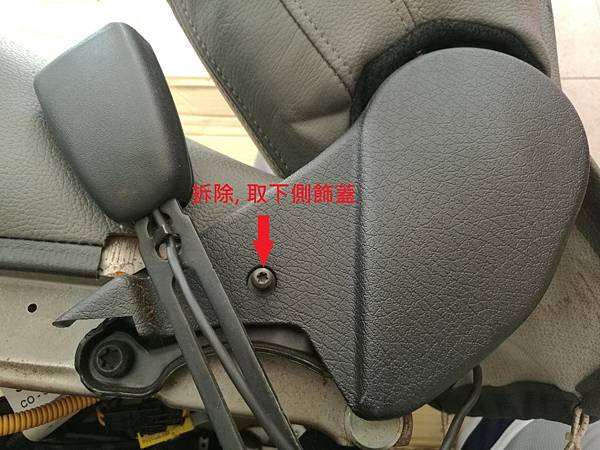 接下來就要拆座椅左右兩邊的 塑膠飾板, 放拆之前要先把安全帶線組固定的束線帶剪掉, 請看下面的照片: