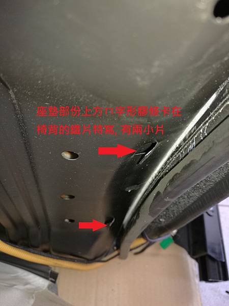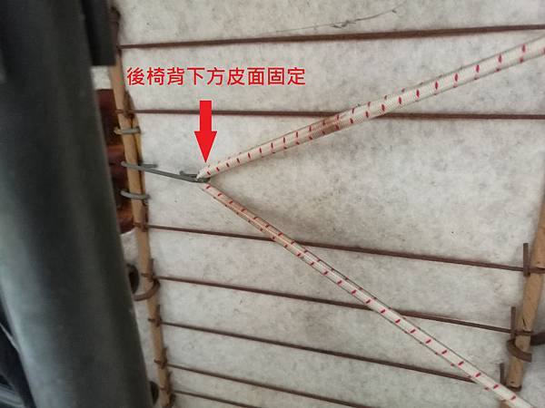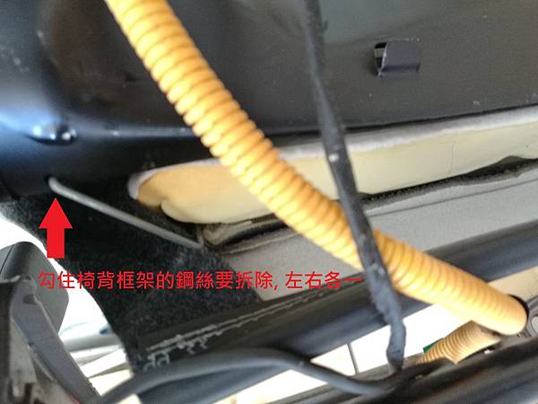 還有固定後座椅背皮面的彈性帶要鬆開, 請看下面的照片:
