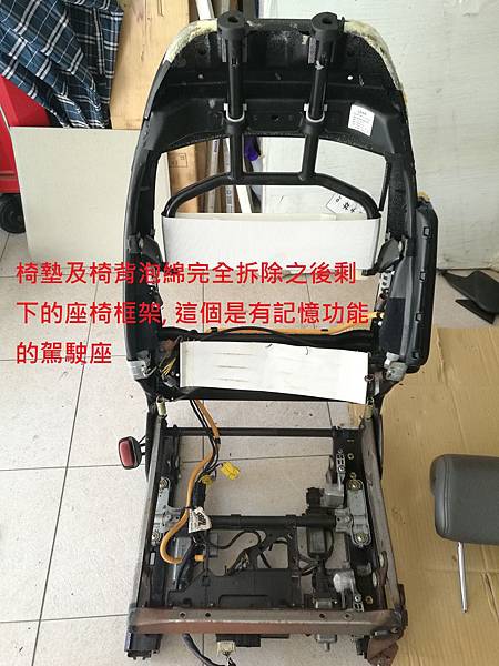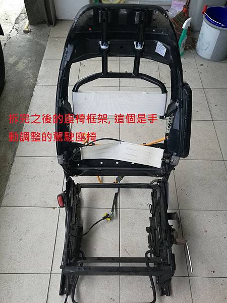 因為我們要互換皮面所以要把皮面狀況比較好的手動座椅也一樣如法炮製,下面是手動椅拆空之後的支架照片: