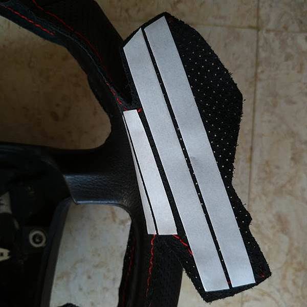 不過因為在反面,所以還好,看不太出來,我自己覺得應該算85分吧,如果上面用雙面膠帶黏貼的那個部份用專業的皮革黏膠來貼合黏緊一點應該效果會更好,不過以第一次DIY 的水準來看應該是OK了,以上經驗與大家分享一下,有興趣自己動手的車友可以自己買來動手玩一下,再補上最後的完工照片, 謝謝收看!
