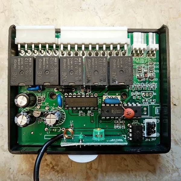 基本上外接電路盒內部裝的線路就是上面的電路圖所標示的, 一共四個Diode, 一個小的12V 繼電器, 還有兩個4.7K的電阻, 這個外接電路盒有三組訊號, 兩組各4 Pin的輸入分別由防盜器的6 Pin 及10 Pin 的接頭送過來, 在上圖的左邊, 一組3 Pin的輸出送到GM X255, 在上圖的右邊.