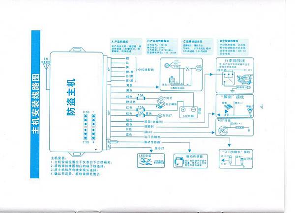 接下來先研究一下這個防盜器的線路要如何連接, 因為說明書的內容比較多, 我把重要的幾頁節錄上來: