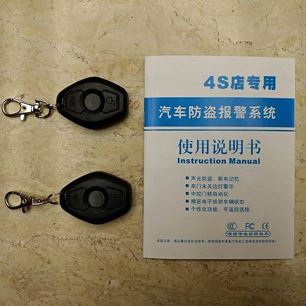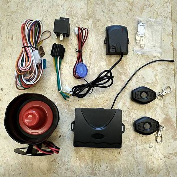 簡單講, 要把車門鎖上就送一個+12V的信號到Lock Pulse那根腳(上圖左下方), 如果想解鎖就送一個+12V的信號到Unlock Pulse那根腳(上圖左上方), GM X255 PIN 7 & 16 用來控制開鎖上鎖, GM X255 PIN 2如果有收到接地的訊號會開啟車輛的室內照明燈, 這個接法解鎖的同時車輛的室內燈也會同時亮起來, 下面談的改裝就是基於這個線路, 所以除了外購的防盜器模組, 我們自己焊接的外加電路盒內部主要就是這個電路, 接下來就是找尋合適的防盜主機, 大多數的防盜主機都可以用, 不過為了同時把鑰匙也更新為新版的盾形鑰匙就須要特別找一下, 我在露天拍賣上找到這一款, 相關的照片如下: