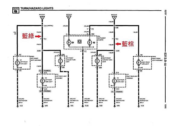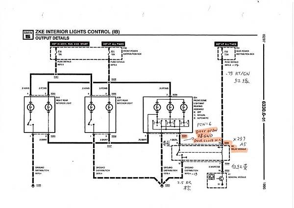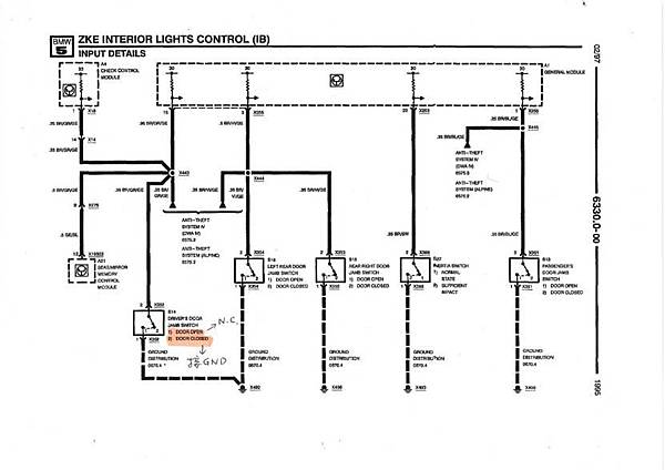 4:藍色, 駕駛座車門開關訊號, 因為原設計是要求車門打開的時候要接地, BMW原本的車門電路如下: