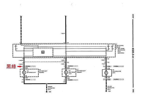 5:棕色 (方向燈1 & 2), 粉紅色(防盜喇叭), 橙色(煞車訊號), 這四根會拉到後行李箱內, 相關的訊號電路圖如下, 第一張是後方向燈, 第二張是煞車燈: