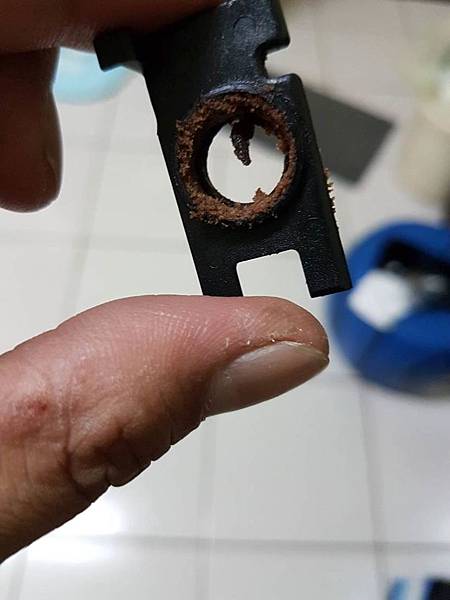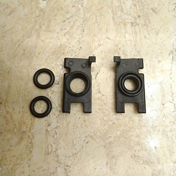 其實頭枕沒有辦法固定就是因為這個類似海綿的材料已經老化,所以我們必須先把這個部分挖掉,之後我們用兩個 O-riog來替代,這樣就可以把頭枕固定,因為這個O-ring要緊配合我用的是9X3mm的O-ring,9mm是指內徑,3mm是外圈的直徑,這個在露天上面很容易就可以買到,好像一個是三塊錢還是四塊錢的樣子,請看照片: