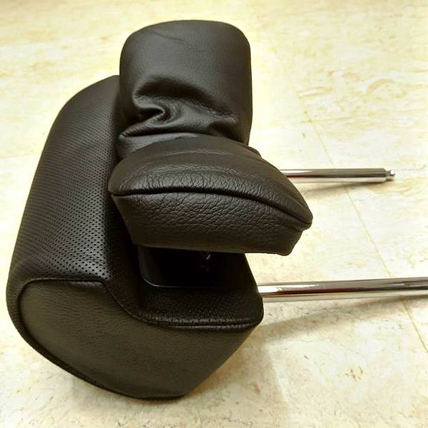 這部分要安裝束線帶會稍有點難度,因為要一手撑開頭枕下方的塑膠飾蓋另一手安裝,不過裝好了之後整個頭枕就恢復正常了,請看照片: