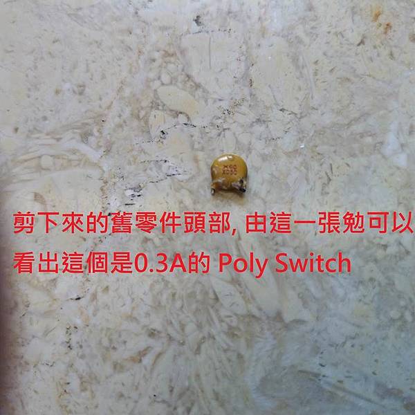 利用原本的金屬腳把新的Poly Switch 焊接上去,請看照片: