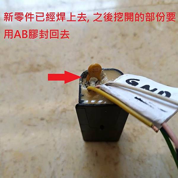 之後再用AB膠把挖掉的部份全封起來,請看照片: