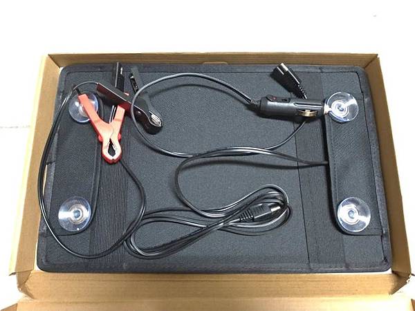 直接放前檔玻璃下面就可以, 點煙器直接插到車上, 先插點煙器再接太陽能板, 充電燈有亮就表示大功告成了.
