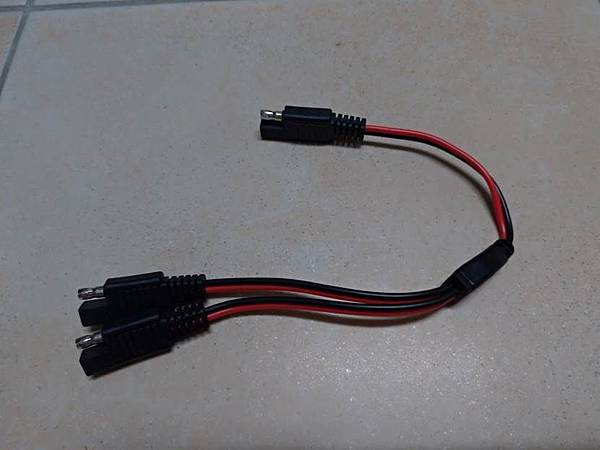 極性轉換頭, 因為零組件由不同廠牌組合而成, 因此線組的極性要用電錶量一下, 如果極性不對就要用這個接頭轉換一下, 在這組充電器的兩條線組都須要加這個極性才會正確, 露拍購買的.